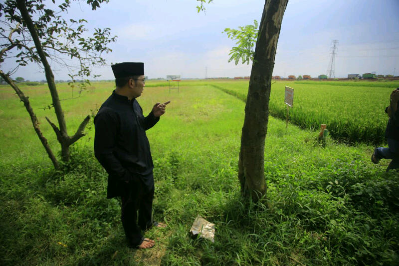 Wali Kota Bandung Ridwan Kamil meninjau lahan yang bakal dijadikan skate park berkelas internasional di kawasan Rancanumpang, Kecamatan Gede Bage, Kota Bandung, Jumat (14/4). (jabartoday/eddy koesman)