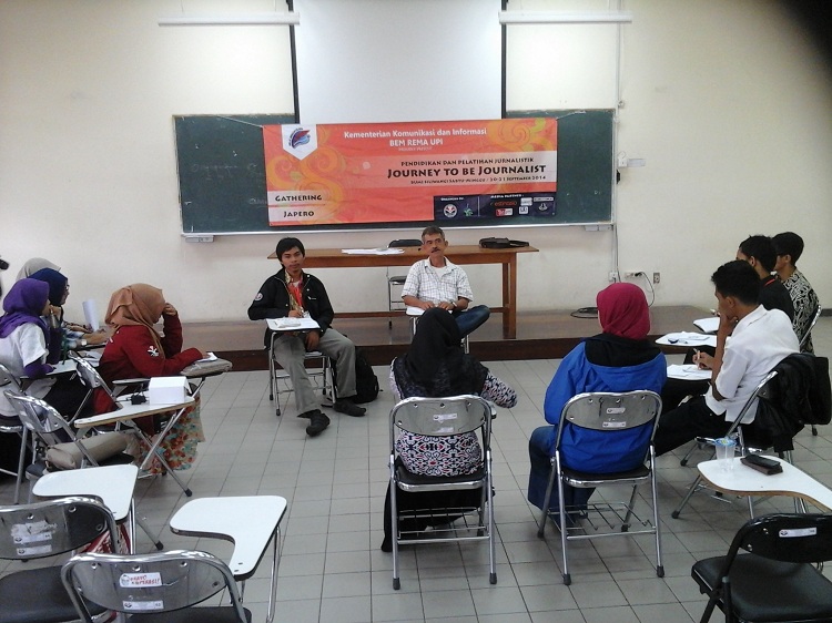 Bertempat di gedung Fakultas Matematika dan Ilmu Pengetahuan Alam Universitas Pendidikan Indonesia, 40 mahasiswa dari berbagai jurusan mengikuti Diklat Jurnalistik 2014 yang digagas Badan Eksekutif Mahasiswa Republik Mahasiswa (BEM REMA) UPI.