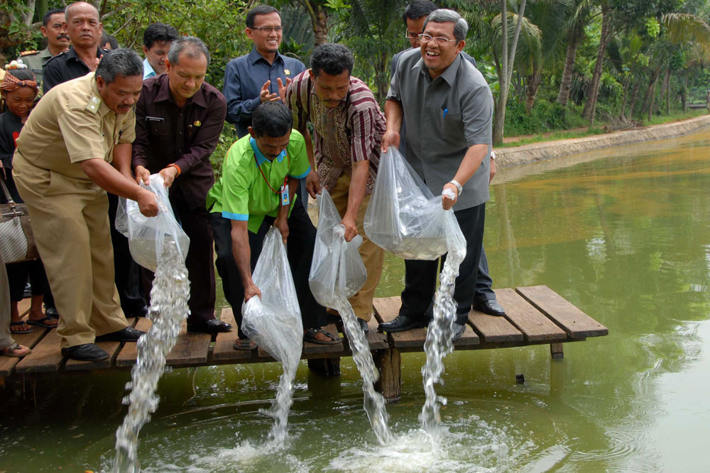 Usai menebar benih sekitar 50 ribu ikan tawes dan nila di Situ, Kang Aher kemudian mengunjungi Unit Pelayan Pengembangan Perikanan (UPP) Kota Depok di Duren Mekar yang lokasi tidak jauh dari situ. Di UPP Kang Aher berdialog dengan para petani pembibitan ikan air tawar, dan memberikan bantuan 50 paket indukan buat pembibitan. “Kami sangat berterima kasih kepada Kang Aher yang sudah memperhatikan kami. Masalah kami memang pada keterbatasan indukan,” kata Nahrowi, Ketua Kelompok Tani Duren Mekar.(HUMAS PEMPROV JABAR/NJP)