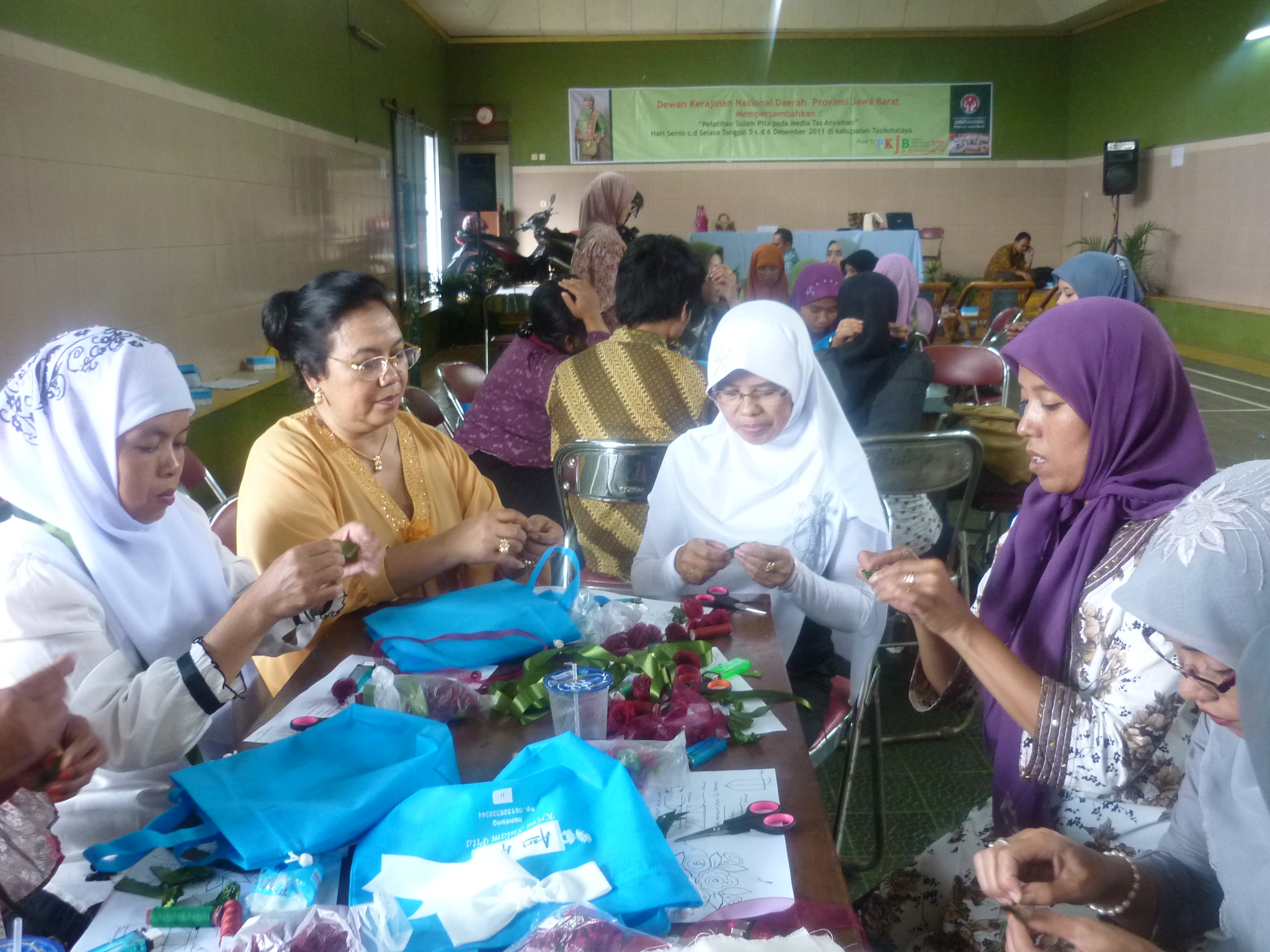 Dewan Kerajinan Nasional Provinsi (Dekranasda) Jawa Barat menggelar pelatihan Sulam Pita pada Media Tas Anyaman bagi ibu-ibu se Parahyangan Timur di Balai Desa Rajapolah, Tasikmalaya, selama dua hari, 5-6 Desember 2011.