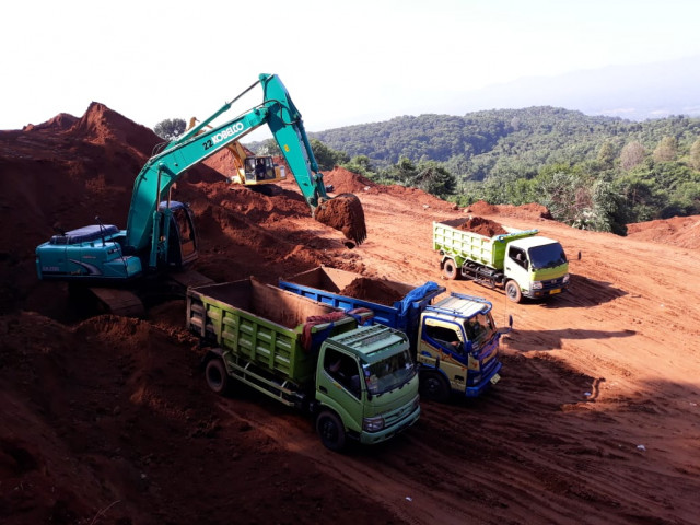 Nampak alat berat yang sedang membelah bukit untuk membuka jalan yang menghubungkan antara Kecamatan Serangpanjang dengan Cipeundeuy, Kabupaten Subang, Sabtu (18/7/2020).