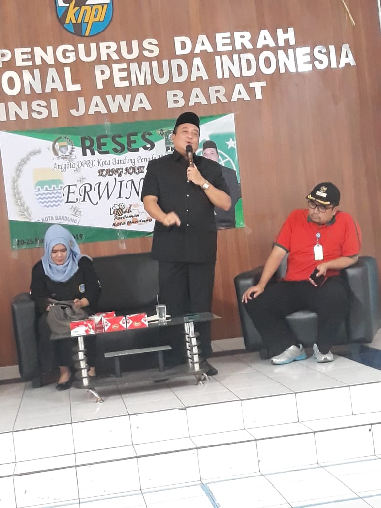 JABARTODAY.COM – BANDUNG Anggota Dewan Perwakilan Rakyat Daerah Kota Bandung dari Partai Kebangkitan Bangsa, Erwin SE, melakukan reses tahap II, masa sidang ke-1 tahun 2019 di daerah pemilihan Bandung III, Kamis (21/11). Kegiatan yang digelar untuk menyerap aspirasi masyarakat itu berlangsung di Gedung KNPI Jawa Barat di Jalan Soekarno Hatta, Kelurahan Kebon Kangkung, Kecamatan Kiaracondong, Kota Bandung.