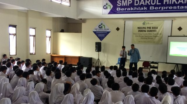 JABARTODAY.COM – BANDUNG Guna melestarikan bahasa Sunda di kalangan generasi muda, SMP Darul Hikam menggelar acara Mieling Basa Indung Sadunya, dengan tema ‘Urang Biasakeun Nyarita ku Basa Sunda’, di Kampus SMP Darul Hikam Bandung, Kamis (20/2).