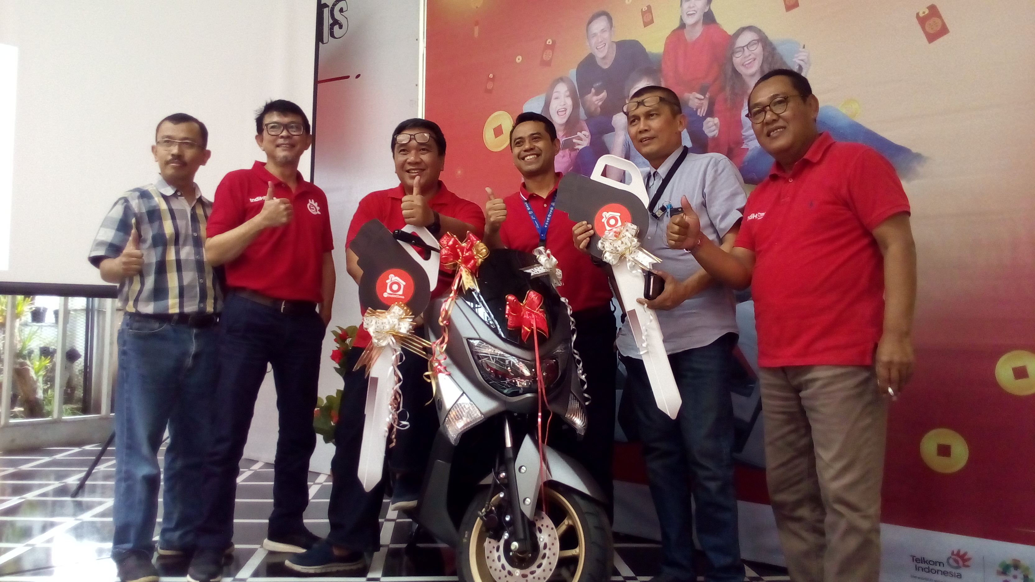 Jajaran PT Telkom Regional Jabar menyerahkan 2 unit sepeda motor kepada pemenang Undian Paket Imlek, yang pada Ramadan tahun ini, program undian kembali digelar, sebagai apresiasi bagi para pelanggan.