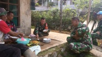 Kehangatan dan kebersamaan anatara warga dan anggota Satgas nampak saat makan siang bersama dengan suguhan hidangan dari warga setempat. (*)