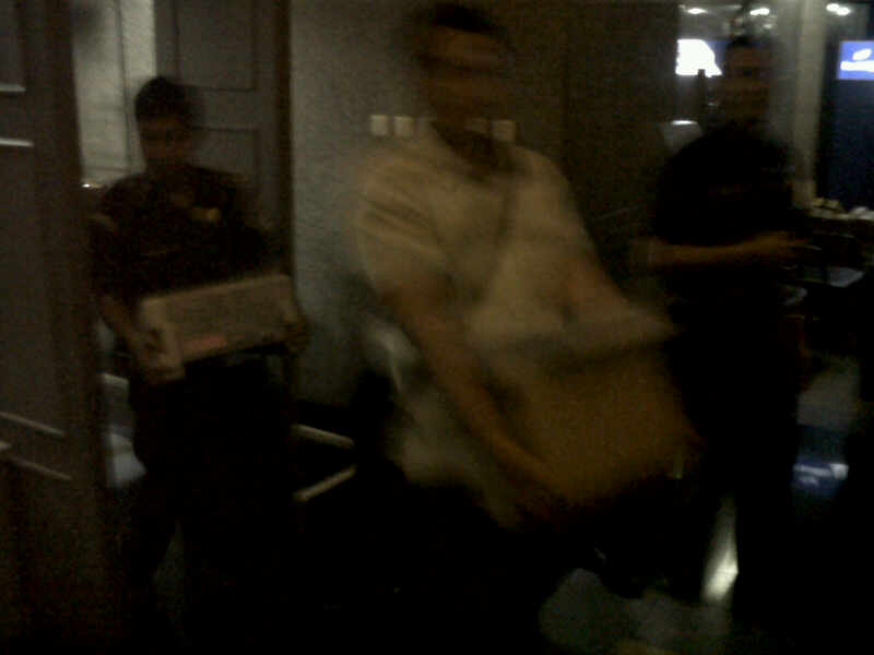 Di sela-sela penggeledahan sendiri ada seseorang yang mengaku wartawan dengan menggunakan kaus warna ungu meminta agar kegiatan yang dilakukan Tim Kejagung tidak diekspos di media massa. (VIL)