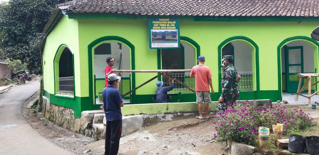 Adapun kegiatan fisik yang dilaksanakan Selasa (7/07/2020), yaitu pengecatan Masjid Al-Fadilah di Kampung Cibarubus RT 22/11, Dusun Pangkalan, Desa Cijengkol, Kecamatan Serangpanjang, yang dikerjakan oleh anggota Satgas TMMD ke-108 Tahun 2020, yaitu Sersan Dua Agis bersama anggota Satgas lainnya dibantu warga sekitar.