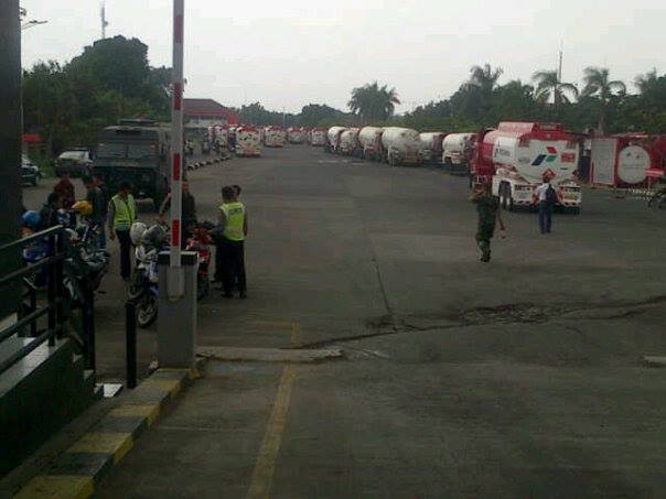 Puluhan supir Pertamina yang membawa 67 mobil tangki, melakukan aksi mogok kerja, Jumat (21/2/2014). Hal itu terpaksa dilakukan karena pihak Pertamina belum memenuhi kewajibannya membayar uang lembur bagi para supir tersebut.