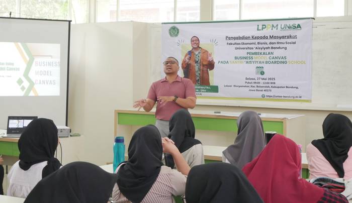 JABARTODAY.COM, BANDUNG – – Komitmen Universitas ‘Aisyiyah (Unisa) Bandung untuk membangun generasi muda yang cerdas dan berkarakter terus ditunjukkan. Salah satunya melalui pelatihan bertema “Business Model Canvas (BMC) Berbasis Wirausaha Islami” oleh Dosen S1 Perdagangan Internasional sekaligus Dekan Fakultas Ekonomi, Bisnis dan Ilmu Sosial Rivaldi Arissaputra, S.E., M.S.M., QMA. yang diberikan kepada para santri di ‘Aisyiyah Boarding School. Selasa (27/05/2025)