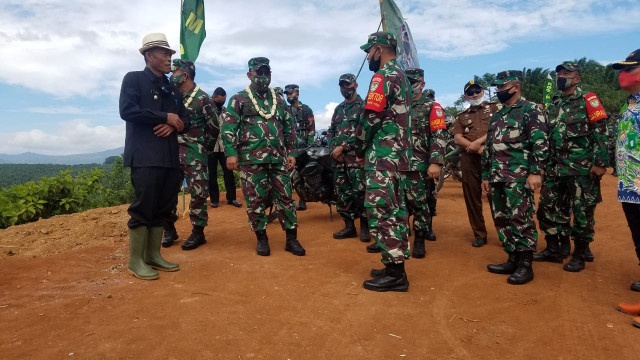 Ketua Tim Wasev TMMD ke-108 Kodim 0605/Subang yang dipimpin oleh Aslog Kasad Mayjen Jani Iswanto, dan didampingi Irdam III/Slw Brigjen Asep Syaripudin, Danrem 063/SGJ Kolonel Inf Elkines Villando Dewangga K, secara langsung melihat proses pembangunan jalan tersebut, Kamis (16/7/2020).
