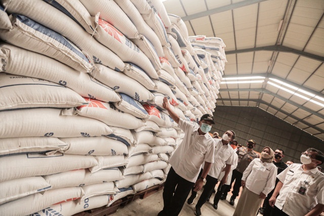 Hal ini terungkap setelah Oded bersama Wakil Wali Kota Bandung Yana Mulyana meninjau Gudang Bulog Cabang Bandung, Jalan Gedebage Selatan, Rabu (7/4/2021). Selain beras, di gudang ini juga terdapat komoditi bahan pangan pokok lainnya seperti minyak kelapa, daging, terigu dan gula.