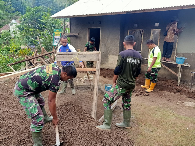 Komandan Satuan Setingkat Kompi Satgas TMMD ke-108 Kodim 0605/Subang Kapten Inf Ernawan mengatakan, anggota Satgas TMMD dan warga tengah melakukan pembuatan teras di rumah tersebut guna mengejar waktu yang tersisa.