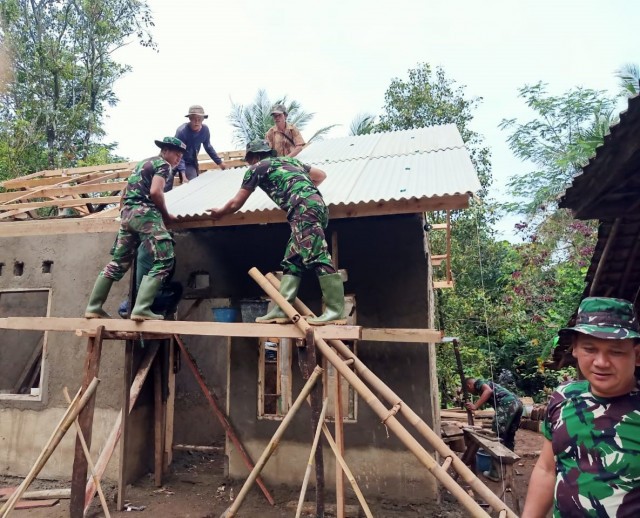 Setiap hari para prajurit silih berganti melakukan proses renovasi di rumah Nemah. Tanpa mengenal lelah para personel Satgas TMMD bergotong-royong bersama masyarakat untuk dapat menyelesaikan tahap pembangunan. Sampai dengan hari ini sudah memasuki tahap plester dinding rumah atau 73 persen dari total pengerjaan. (*)