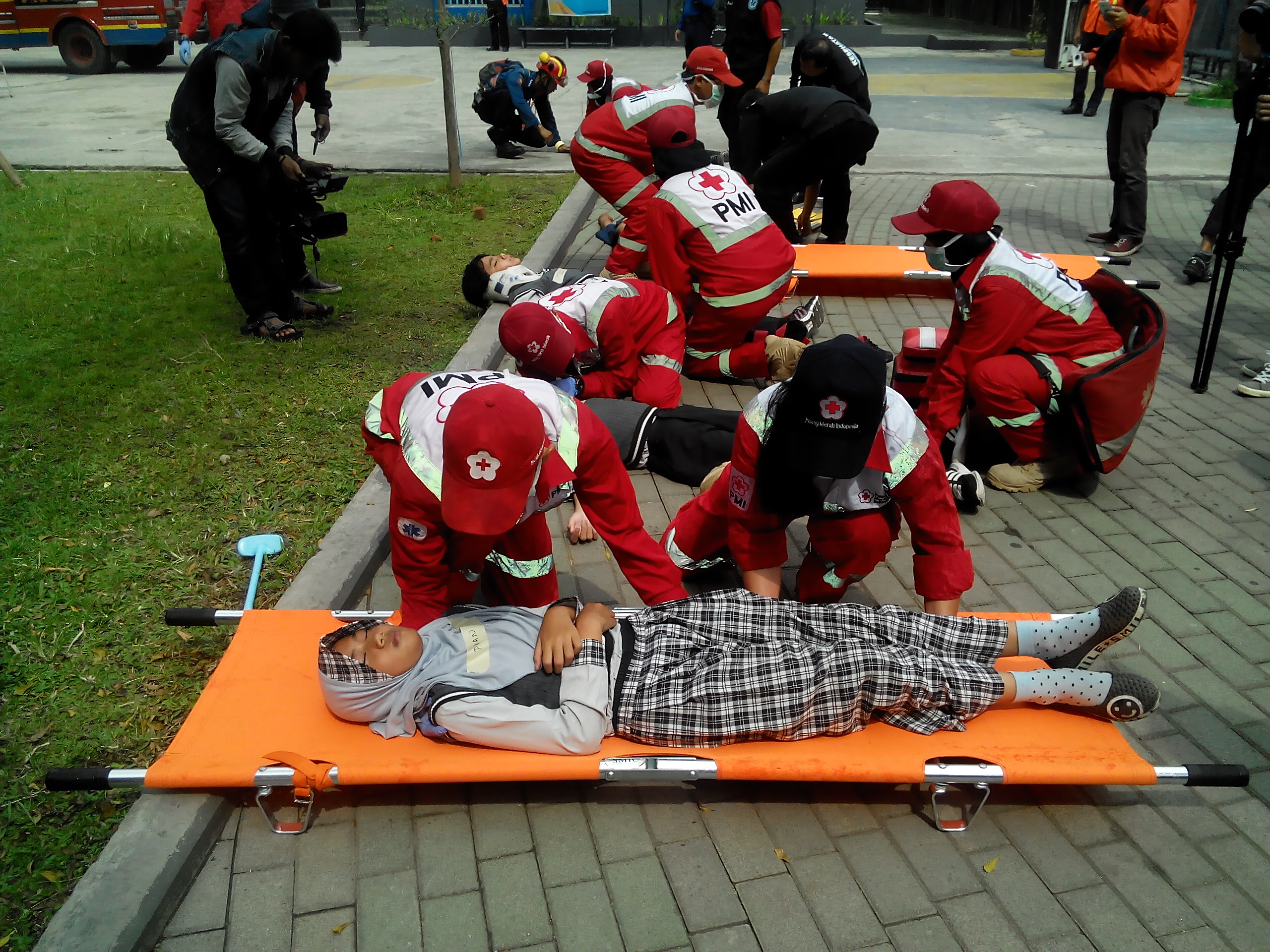 Dinas Kebakaran dan Penanggulangan Bencana Kota Bandung, dibantu OPD terkait, relawan,TNI, Polri, PMI, dan komunitas lainnya melakukan langkah tindakan/evakuasi korban. Namun, jangan khawatir, karena kejadian itu adalah simulasi bencana yang dilakukan untuk melatih kepekaan dan kesiap siagaan masyarakat dalam menanggulangi bencana gempa.