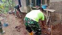 Anggota Satuan Tugas TNI Manunggal Membangun Desa ke-108 Kodim 0605/Subang terus mengebut pengerjaan rehab rumah …