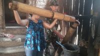 Anggota TNI Satgas TMMD ke 108 Tahun 2020 turut membantu produksi Gula Aren di pabrik …