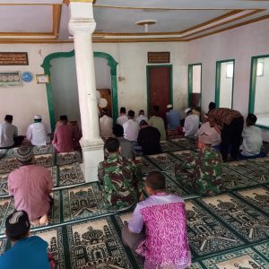 Anggota Satgas TMMD Jumatan bareng Warga