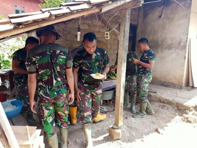 Personel TNI yang memiliki keterampilan memasak tidak sungkan-sungkan terjun sebagai juru masak, bersama warga yang setiap harinya memasak kebutuhan konsumsi untuk seluruh personel.